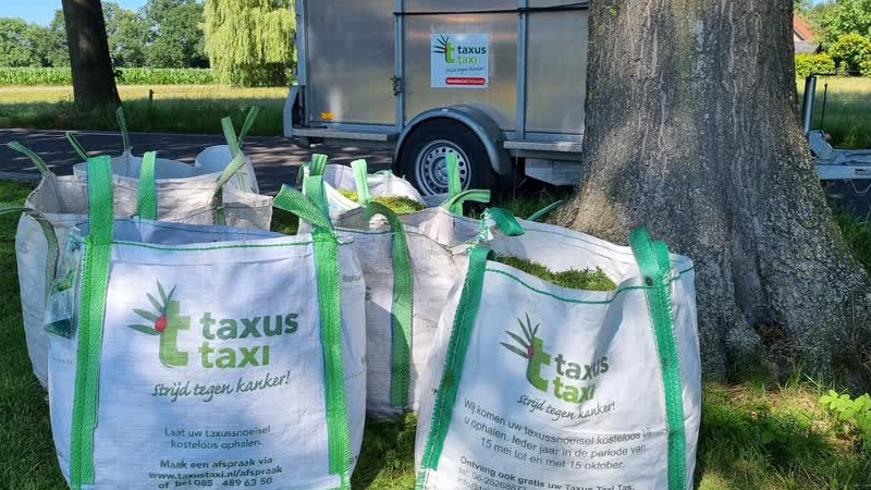 Stichting Taxus Taxi haalt al sinds 2008 taxussnoeisel gratis aan huis bij mensen op. Jaarlijks nemen tienduizenden mensen deel aan de taxusinzameling om zo hun steentje bij te kunnen dragen in de strijd tegen kanker. Nadat het snoeisel is opgehaald wordt het taxus groen afgeleverd bij een kruidendrogerij die het snoeisel droogt en gereed maakt voor transport naar het buitenland.
