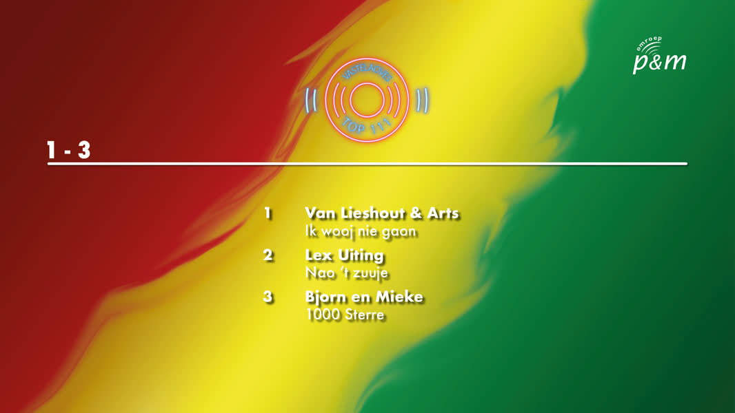Van Lieshout & Arts is op nummer één geëindigd in de Top 111, de vastelaoveshitlijst van Omroep P&M. Het nummer 'Ik wooj nie gaon' kreeg de meeste stemmen.