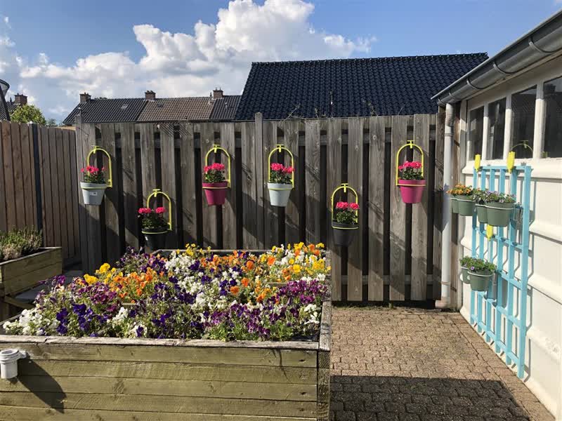 Verder zijn in de tuin van het Huis van Morgen aan de Bernhardstraat de plantenrekken opnieuw geverfd en werd de stoep grondig gereinigd.