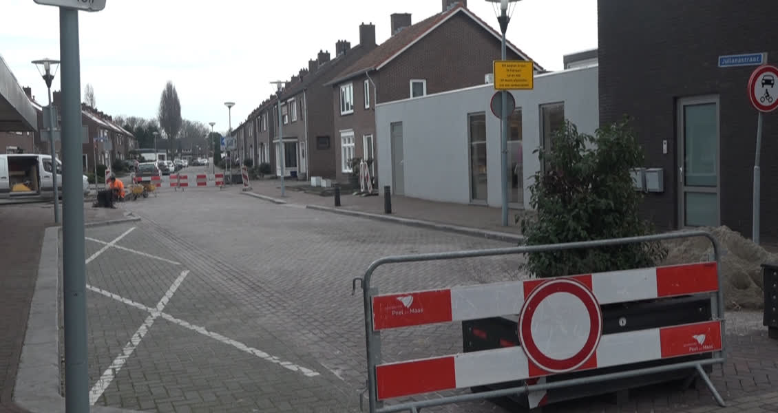 Zes weken lang een gewijzigde verkeerssituatie in het centrum van Panningen. De kruising Raadhuisstraat en Julianastraat is sinds maandag afgesloten voor autoverkeer. Auto’s kunnen niet vanuit de Julianastraat naar de Raadhuisstraat en het Raadhuisplein rijden, en omgekeerd.