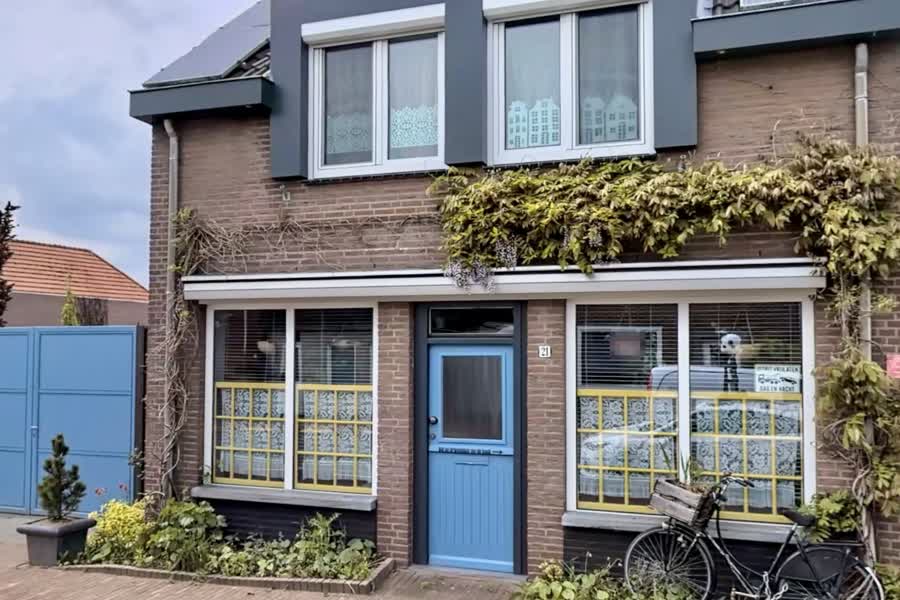 In een nieuwbouwwijk in Maasbree met de naam Germanenhof, prijkt een opvallende woning met een bijzo...