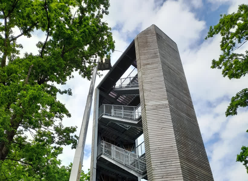 De werkzaamheden vonden plaats op 22 meter hoogte. Met de afronding is het Belfort in Meijel weer toegankelijk voor het publiek.