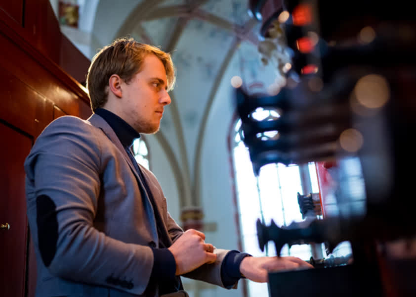 Organist Toon Hagen bespeelt het Cavaillé-Coll-Mutin orgel in de Kapel Missiehuis Lazaristen in Pann...