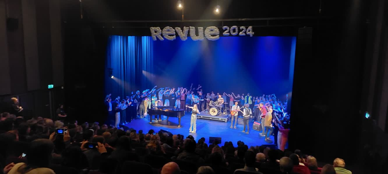 Omroep P&M zendt deze week De Revue 2024 uit op televisie. Leerlingen en docenten van Het Bouwens voerden het spektakel in februari drie keer op.