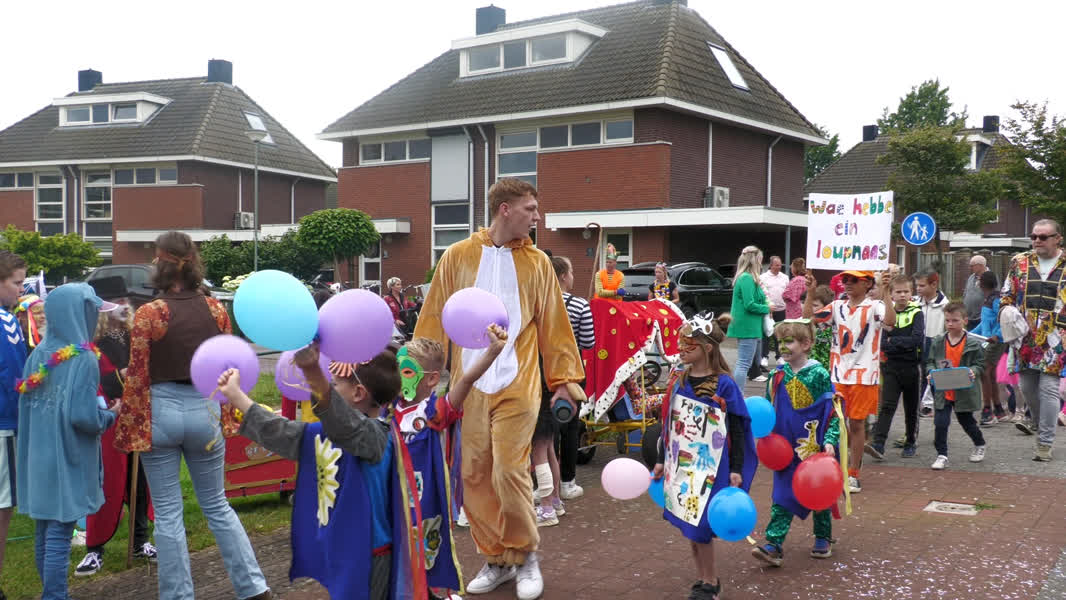 De carnavalsparade van basisschool De Liaan en KC Natuurtalent die eerder dit jaar niet doorging, we...