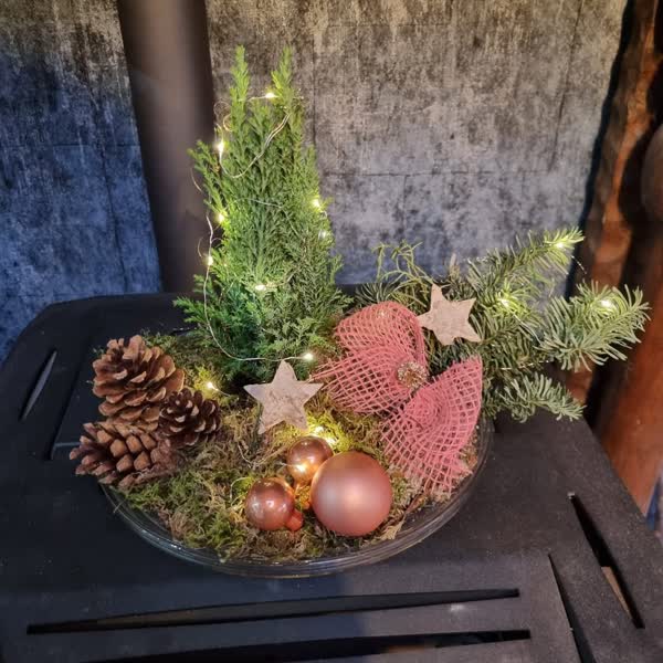 De kerststukjes zijn gemaakt door de vrijwilligers van Herberg Papilio. De opbrengst van deze samenwerking gaat naar beide verenigingen.
