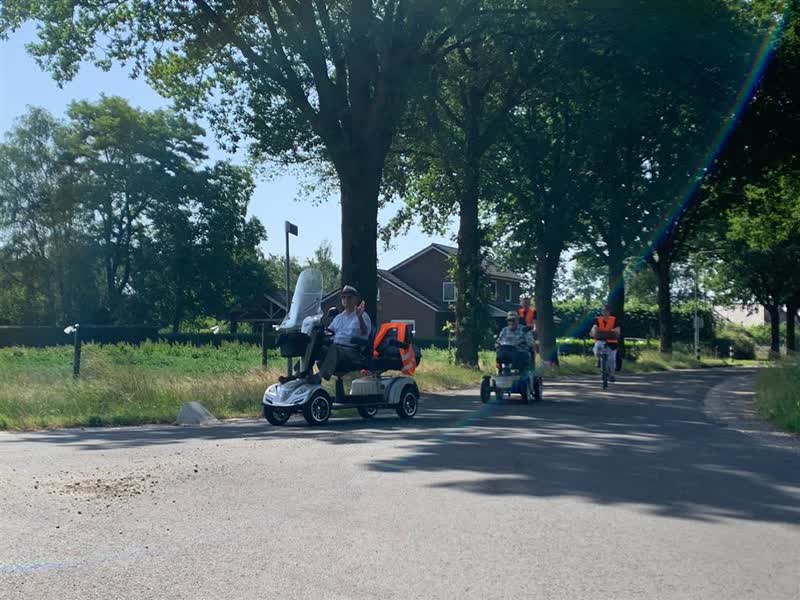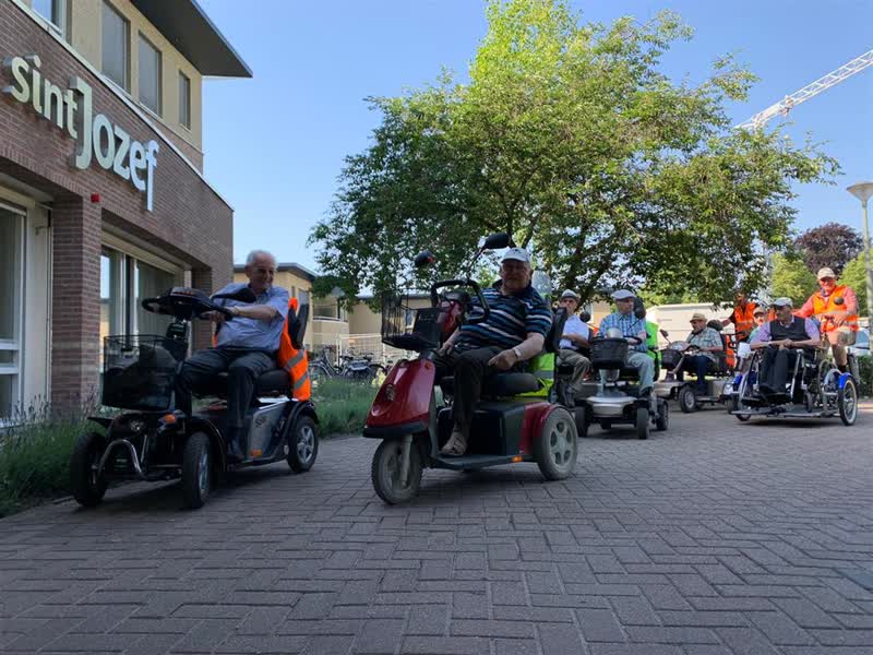 In Meijel werd donderdagochtend de eerste scootmobielentocht gehouden. Acht mannen deden mee. "Voor de gezelligheid", reageert een deelnemer.KBO Meijel en Sint Jozef Zorg en Wonen hebben het initiatief samen opgepakt.Gezellige middag"Het is voor mensen die minder mobiel zijn en afhankelijk zijn van een scootmobiel om hen ook een gezellige middag te bezorgen", vertelt Peter Knoops, bestuurslid KBO Meijel.Beetje groeienAan de tocht kunnen in eerste instantie maximaal 10 mensen meedoen. "Het moet nog een beetje groeien natuurlijk", zegt Knoops. "Het is niet zo dat er gelijk tientallen mensen aan mee willen gaan doen."BijkletsenDe route is uitgezet door een Meijelnaar die goed bekend is in de omgeving. "Hij weet waar we wel en niet terecht kunnen", legt het KBO-bestuurslid uit. "Hij zorgt er ook voor dat we na drie kwartier rijden bij een terrasje terechtkomen waar we gezellig kunnen gaan zitten en met elkaar kunnen bijkletsen."De tocht wordt elke eerste en derde donderdagmiddag van de maand verreden.
