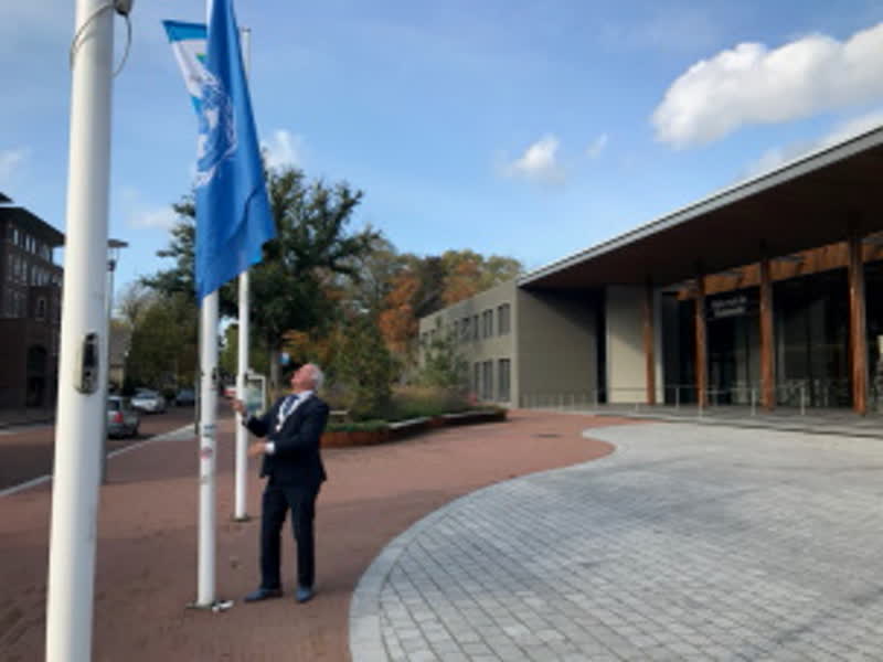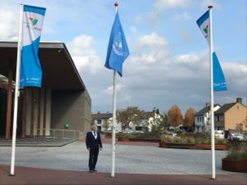 Loco-burgemeester Wim Hermans heeft maandag namens de gemeente Peel en Maas de speciale Verenigde Naties vlag gehesen ter gelegenheid van het 75-jarig bestaan.
