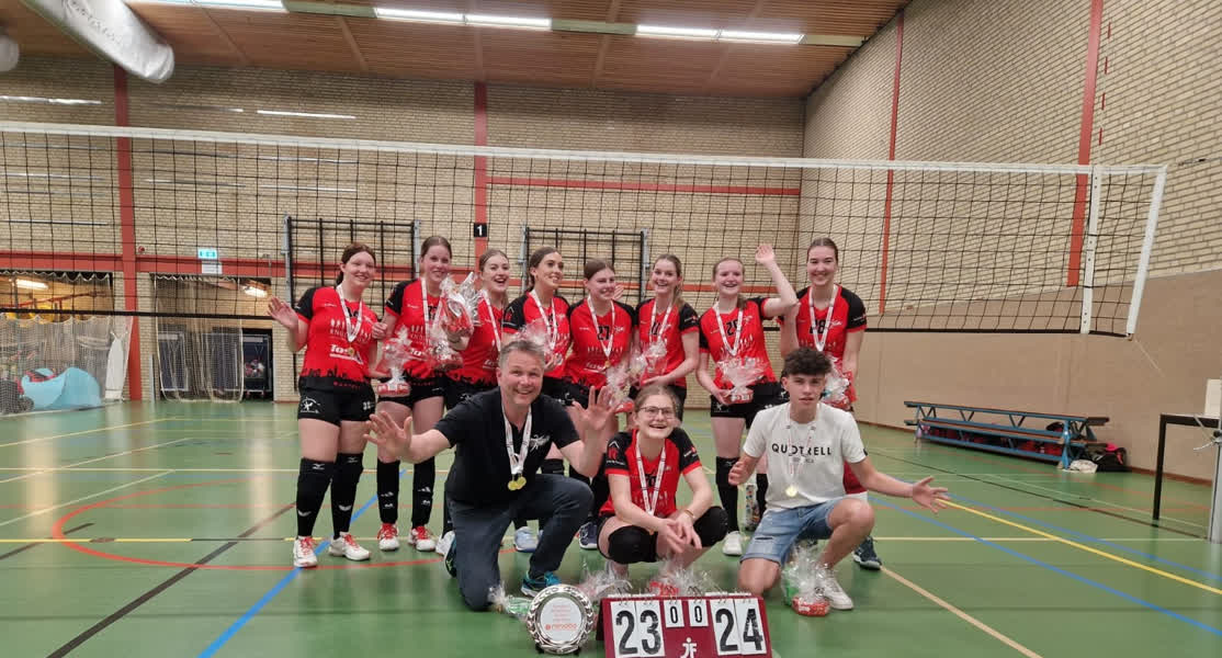 “De doelstelling aan het begin van het seizoen was iedereen leuk laten spelen, maar al snel bleek dat er meer in het vat zat”, laat Driessen weten. “Een enkele keer was er een tactische wissel nodig. Toch was het samenhorigheidsgevoel dat dit kampioenschap heeft mogelijk gemaakt”, sluit hij af. De dames willen nu de laatste wedstrijd winnen. Als dat lukt, zijn ze ongeslagen kampioen geworden.