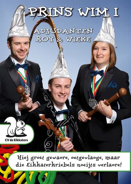 Wim Gommans is zaterdagavond uitgeroepen als de nieuwe prins van CV De Eikkaters uit Kessel-Eik. Zijn adjudanten zijn Wieke Peeters en Roy.