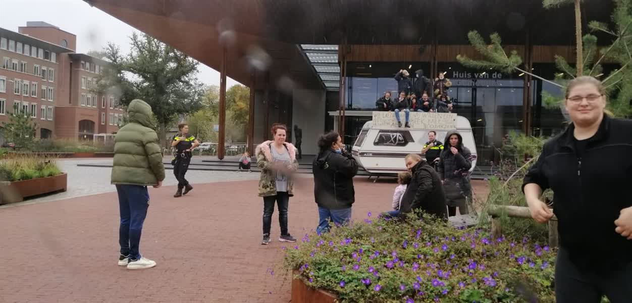 Een groep woonwagenbewoners heeft donderdagmiddag rond 16.00 uur gedemonstreerd bij het Huis van de Gemeente. De groep wil meer standplaatsen voor hun woonwagens.