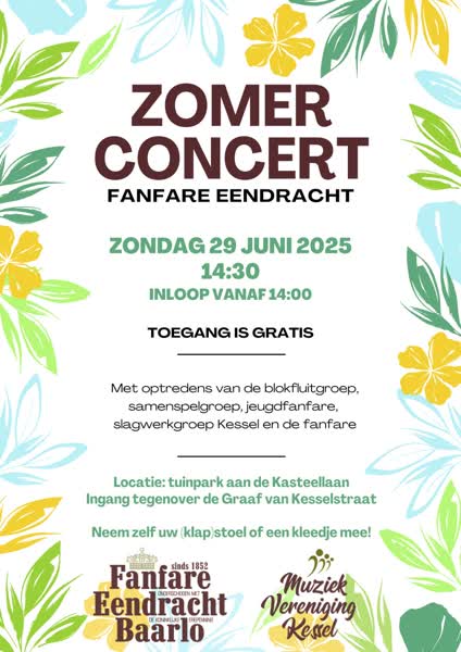 Fanfare Eendracht Baarlo geeft ter afsluiting van het muzikale seizoen 2024-2025 een Zomerconcert.
