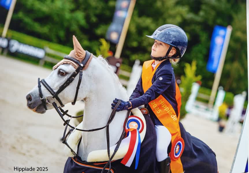 Maud reed in haar eerste ronde een keurige proef en behaalde daarmee hoge stijlpunten. In de barrage zette ze een scherpe tijd neer en bleef foutloos. Dat leverde haar uiteindelijk een gouden medaille op in de rubriek A-B 60 cm, samen met haar pony Toby. Een geweldige prestatie, zeker gezien de sterke tegenstanders die ze had.