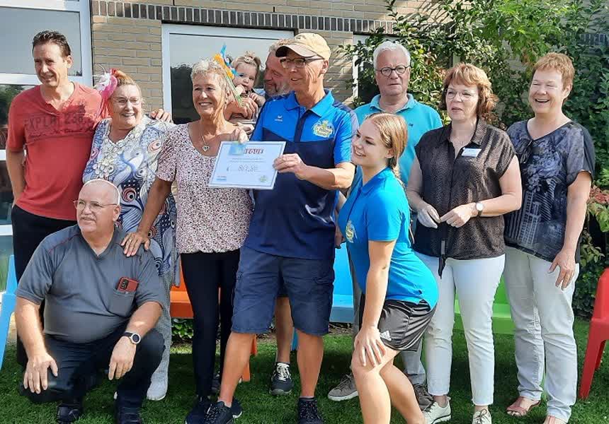 Deelnemers aan de zwemvierdaagse op camping de Heldense Bossen hebben de afgelopen week 862,80 euro bij elkaar gezwommen voor het Plattelandshoés.